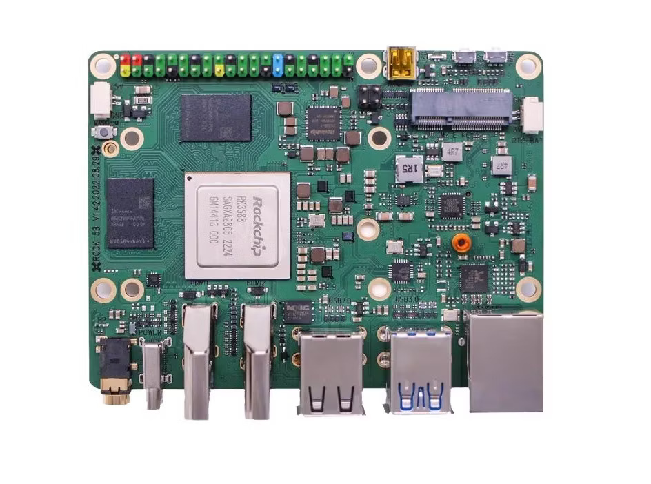 Rock 5 Model B dựa trên bộ xử lý RK3588 tương tự như Orange Pi 5 Plus nhưng có giá cao hơn nhiều. Nó hỗ trợ tối đa 32GB RAM LPDDR4x và có thể cấp nguồn cho tối đa 4 màn hình thông qua hai cổng HDMI, DisplayPort over USB-C và interface MIPI DSI.