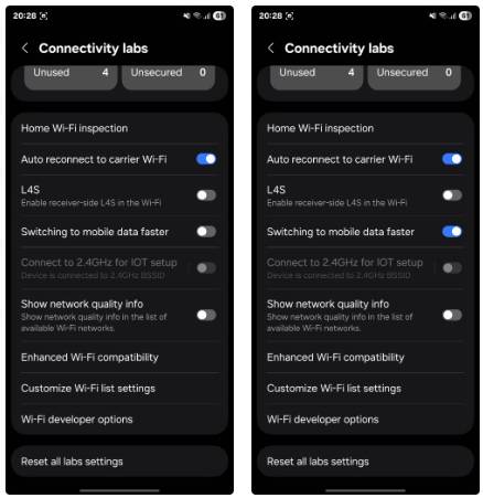 Samsung đã ẩn menu Connectivity Labs trong phần cài đặt Wi-Fi, có thể là để giữ cho phần còn lại của menu gọn gàng.
