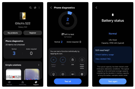 Trong ứng dụng Samsung Members, bạn cũng có thể sử dụng menu Phone diagnostics để đảm bảo các phần cứng khác của điện thoại hoạt động bình thường. Bạn có thể kiểm tra mọi thứ, từ màn hình cảm ứng và micro đến các nút vật lý và cảm biến. Việc này sẽ giúp bạn phát hiện bất kỳ sự cố phần cứng tiềm ẩn nào trước khi chúng trở thành vấn đề lớn hơn.
