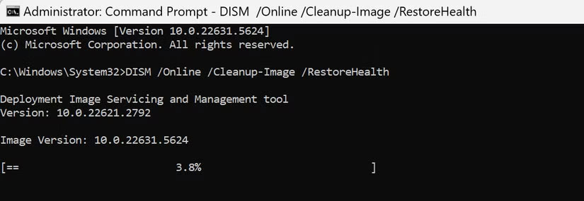 Nếu SFC không sửa được, hoặc sửa nhưng vẫn báo lỗi, bước tiếp theo cần dùng tới DISM (Deployment Image Servicing and Management).