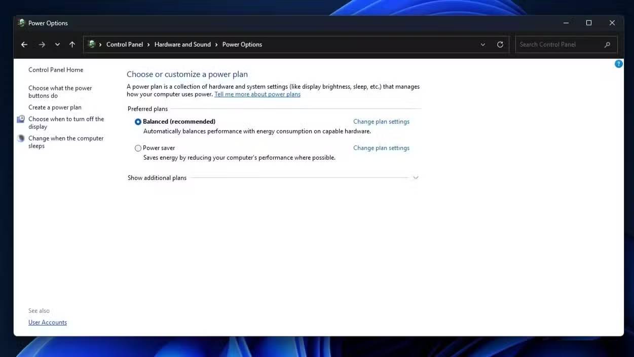 Theo mặc định, cài đặt nguồn của Windows được đặt ở cấu hình cân bằng, mang lại sự kết hợp tốt giữa hiệu suất và hiệu quả năng lượng.
