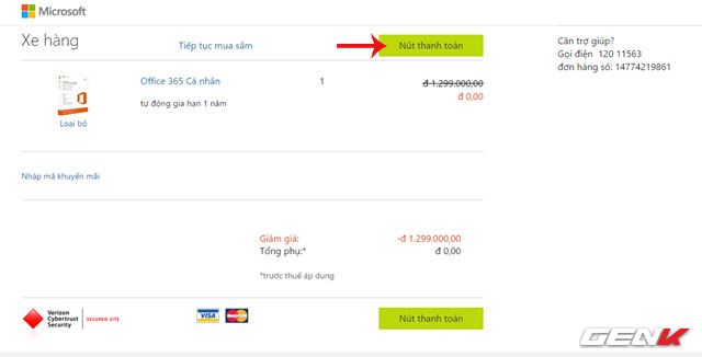 Trang tiếp theo xuất hiện để bạn có thể kiểm tra lại thông tin, nhấn Nút thanh toán với trị giá 0 đồng.