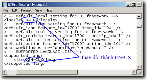 Tiếp theo, các bạn mở file UIProfile.cfg theo đường dẫn C:\Program Files\Trend Micro\UniClient\UiFrmwrk\ bằng NotePad hoặc Notepad++. Tại dòng 75 và 85 với ký tự ZH-CN, hãy thay đổi cả 2 thành EN-US và lưu thay đổi: