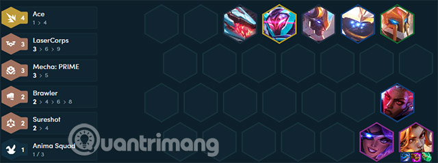 Hãy bắt đầu với những thứ có sẵn trước, cách kết hợp này dù không có Biệt Đội Siêu Thú bên cạnh nhưng Miss Fortune cùng với 4 ACE khác vẫn là nguồn sát thương tổng hợp rất trội về cuối game.