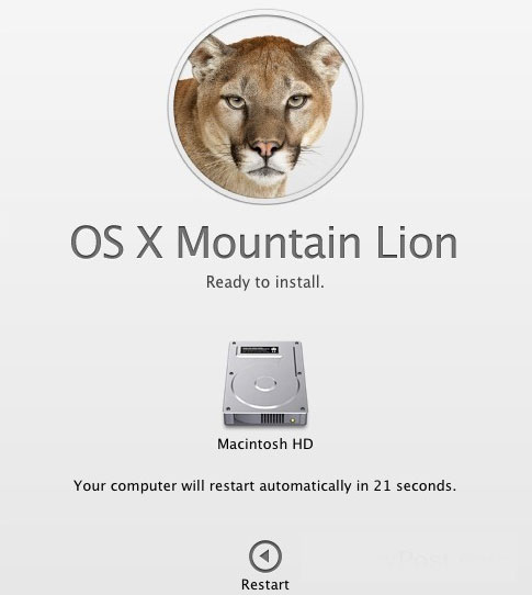 Một biểu tượng Mountain Lion sẽ hiện ra trong Launchpad khi nó được tải. Người dùng nên cắm cáp Ethernet hơn là nâng cấp qua WiFi.