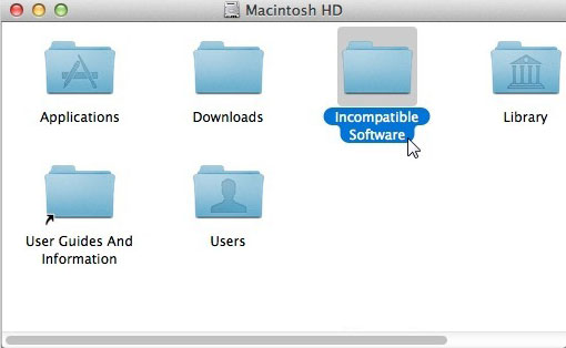Phần mềm được chuyển sang một thư mục có tên Incompatible Software trên ổ đĩa.