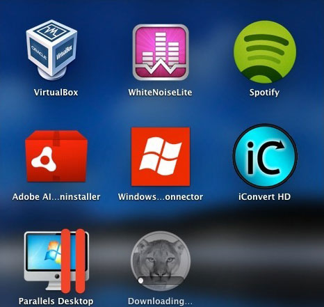 Phần mềm không tương thích này cũng được hiển thị từ những biểu tượng trên Dock. Ví dụ như, trong bài này, Parallels Desktop 6.0 không thể chạy trên Mountain Lion.