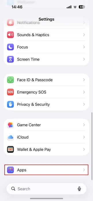 Để làm điều này, hãy mở ứng dụng Settings và đi xuống mục Apps. Tìm mục Reminders trong danh sách.