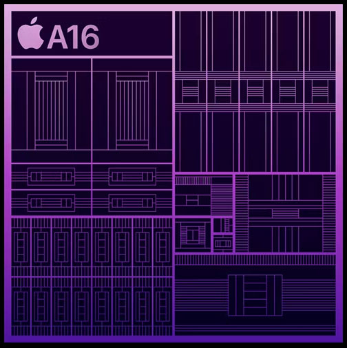 Chip A16 được xây dựng trên quy trình 4nm, có CPU 6 lõi và GPU 5 lõi. Trọng tâm chính của Apple với A16 Bionic là hiệu quả sử dụng năng lượng, một chủ đề nổi bật trong buổi công bố chính thức. Công ty đã thực hiện một số thay đổi đối với neural engine, băng thông GPU, số lượng bóng bán dẫn, v.v… để đạt được điều này.