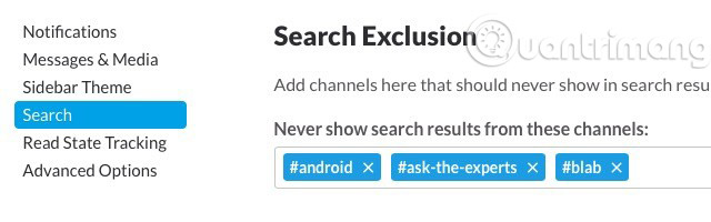 Nếu bạn muốn ngăn Slack hiển thị kết quả từ một số kênh nhất định, chẳng hạn như những kênh mà bạn không sử dụng thường xuyên, bạn có thể làm điều đó trong Preferences > Search. Trong hộp thoại được cung cấp ở đó, nhập tên kênh và chọn nó từ danh sách xuất hiện. Điều này sẽ loại trừ kênh đó khỏi kết quả tìm kiếm.