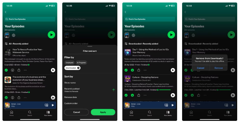 Bắt đầu với những ứng dụng thường dùng: Spotify, Apple Music, YouTube, Netflix và ứng dụng podcast yêu thích của bạn. Hầu hết chúng đều có phần tải xuống, nơi bạn có thể nhanh chóng xem những gì đang chiếm dung lượng. Nếu đó là thứ bạn đã nghe hoặc xem hoặc có thể bạn sẽ không xem trong thời gian tới, hãy xóa nó.