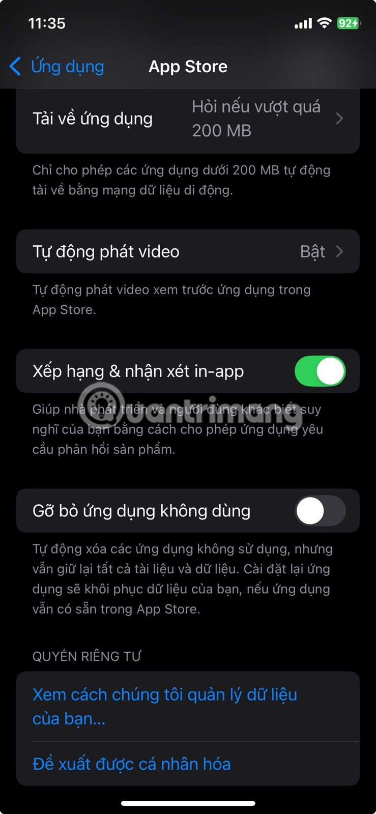 Để bật tính năng tự động gỡ bỏ, hãy vào Cài đặt > App Store và bật Gỡ bỏ ứng dụng không dùng. Để kiểm soát nhiều hơn, hãy truy cập Cài đặt > Cài đặt chung > Dung lượng iPhone, nhấn vào ứng dụng mà bạn hiếm khi sử dụng và chọn Gỡ bỏ ứng dụng. Thay đổi nhỏ này thường có thể giải phóng hàng gigabyte dung lượng mà không xóa bất kỳ thứ gì quan trọng.