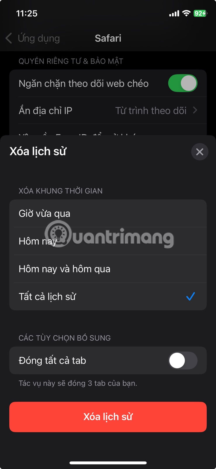 Trong Safari, hãy vào Cài đặt > Safari > Xóa lịch sử và dữ liệu trang web. Thao tác này sẽ xóa các file và lịch sử được lưu trong cache nhưng vẫn giữ lại mật khẩu đã lưu và dữ liệu tự động điền của bạn.