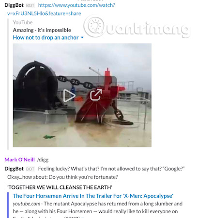 Hãy bắt đầu với một trong những trang web nổi tiếng nhất trên Internet. Một trong số những dự án mà Slack đang tiến hành lúc này là Slack Bot (Diggbot).