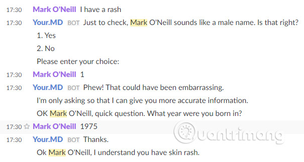 Đôi khi thực sự khó khăn để đi gặp bác sĩ, nếu bạn có một vấn đề đáng xấu hổ. Vì vậy, thực sự tiện dụng nếu nói chuyện với Dr Slackbot thay thế. Nó không phán xét bạn dưới bất kỳ hình thức nào và bạn có thể thoải mái nói ra vấn đề của mình. Bạn cũng có thể ngừng search Google về những vấn đề kiểu như “Tôi bị đau đầu” và rồi nhận được kết quả là một trang web nói rằng bạn bị ung thư. Kết quả của Your.MD được kiểm tra bởi Dịch vụ Y tế Quốc gia Anh, vì vậy bạn có thể yên tâm rằng thông tin được cung cấp là đáng tin cậy.
