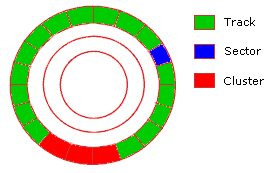 Thông tin được ghi và đọc từ cả hai mặt của đĩa, sử dụng cơ chế mounted on arms, di chuyển cơ học qua lại giữa phần trung tâm và rìa ngoài đĩa. Quá trình di chuyển này được gọi là “seeking” (tìm kiếm) và tốc độ di chuyển qua lại được gọi là “seek time” (thời gian tìm kiếm). Các thông tin đầu đọc (ghi) tìm kiếm nằm trên các track (rãnh), là những đường tròn dữ liệu đồng tâm trên ổ. Các track được chia thành nhiều đơn vị logic gọi là sector (cung từ). Mỗi một sector có địa chỉ riêng (số track cộng với số sector), được dùng để tổ chức và định vị dữ liệu.