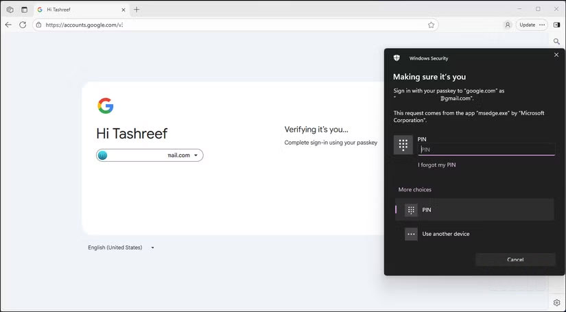 Hầu hết các trang web lớn, bao gồm Google, Microsoft, Apple, Amazon, Adobe và Meta (Facebook và Instagram), đều hỗ trợ passkey. Nhiều người đã thiết lập chúng cho Google Workspace, tài khoản Microsoft và thậm chí cả PayPal của mình. Mỗi khi cần đăng nhập, hãy chọn passkey và sau đó xác thực bằng mã PIN.