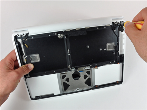 Chùm ảnh và đoạn video mô tả chi tiết quá trình tháo gỡ các linh kiện có trong "lớp áo" trắng muốt của Apple Macbook vỏ nhựa, thiết kế Unibody mới.