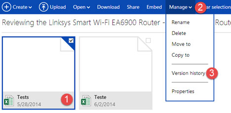 Lựa chọn tài liệu mà bạn muốn truy cập phiên bản cũ. Ở trên thanh công cụ trên cùng, bấm chọn mục Manager, trong menu xổ xuống chọn Version history. Lưu ý, tùy chọn này sẽ chỉ hiển thị phiên bản cũ của các tập tin Office như Word, bảng tính Excel hoặc các bài thuyết trình Powerpoint.