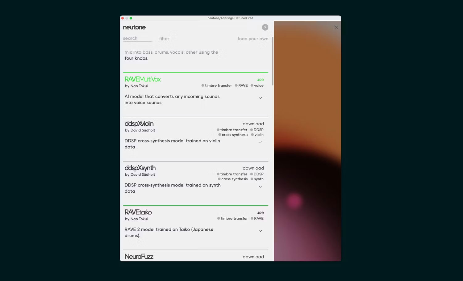 Nói một cách đơn giản hơn, các mô hình này cho phép bạn lọc đầu vào của một âm thanh thông qua chất lượng của âm thanh khác. Sáng tạo và mang tính thử nghiệm, Neutone đang tạo tiền đề cho một làn sóng mới các plugin AI bên thứ ba hấp dẫn và miễn phí.