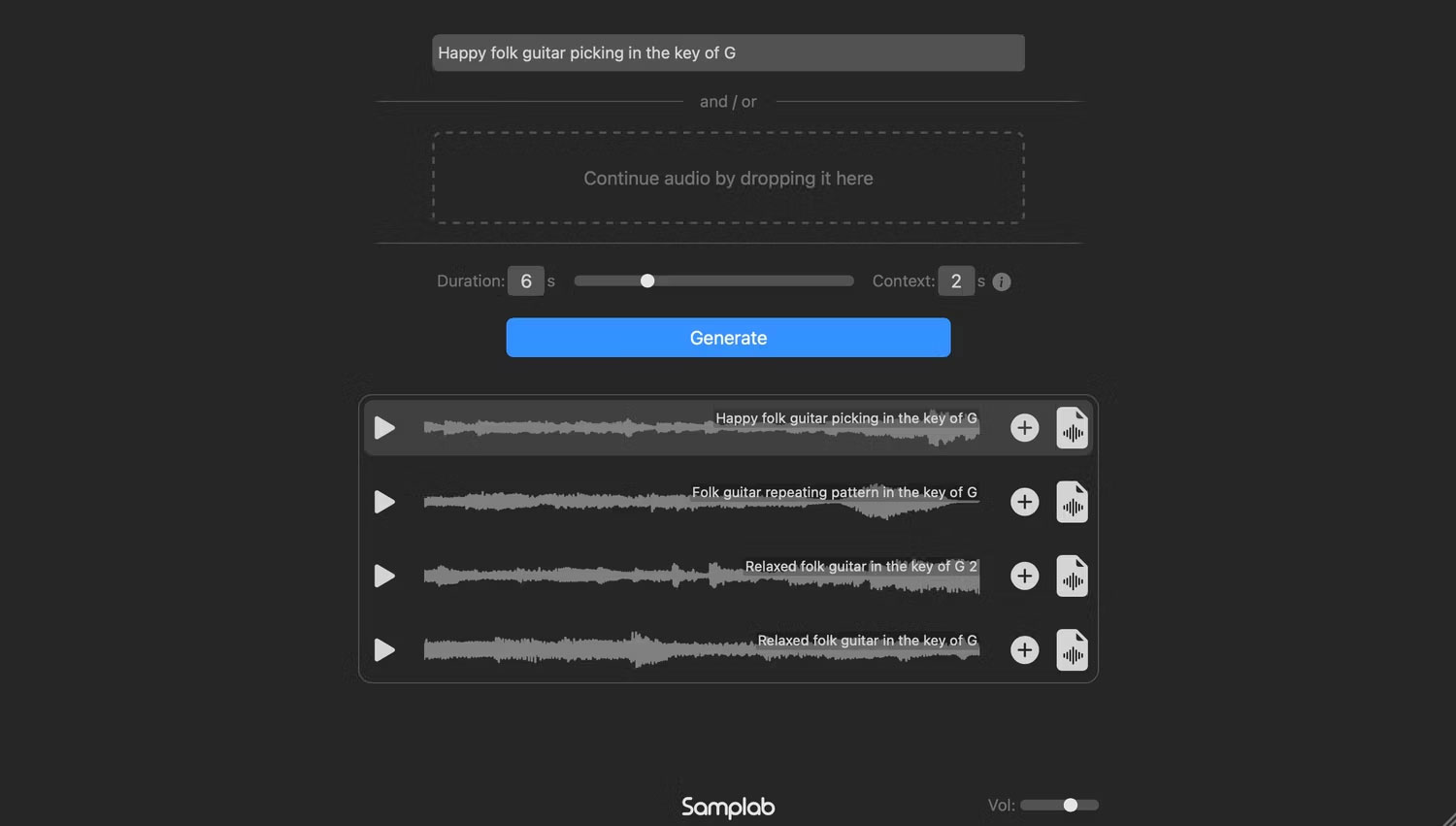 Sử dụng plugin rất đơn giản. Chỉ cần nhập mô tả vào hộp văn bản và nhấn Generate. Sau một lúc, file âm thanh sẽ xuất hiện, sau đó bạn có thể kéo và thả nó vào DAW của mình. Các sample được giới hạn tối đa là 20 giây, với tùy chọn bổ sung để tiếp tục tạo từ sample trước đó.