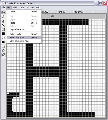 - Khi đã tạo xong ký tự riêng, chọn Save Character từ menu Edit.