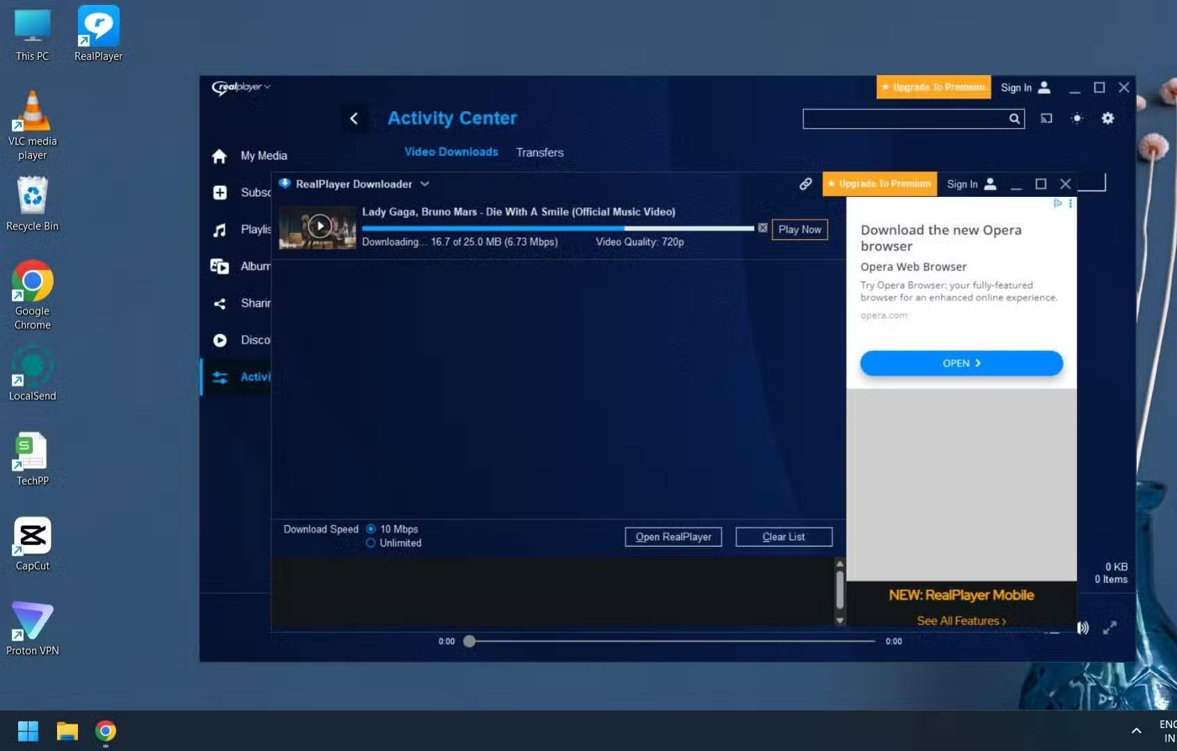 Phiên bản hiện tại của RealPlayer, phiên bản 25, đi kèm với rất nhiều tính năng. Ví dụ, bạn có thể tải xuống video từ YouTube, Vimeo, Facebook, TikTok và Instagram với chất lượng cao nhất có thể. Bạn thậm chí có thể chọn ngôn ngữ trong khi tải xuống hoặc phát. Bạn vẫn được hỏi liệu bạn có muốn cài đặt trình duyệt Opera trong quá trình cài đặt RealPlayer hay không.