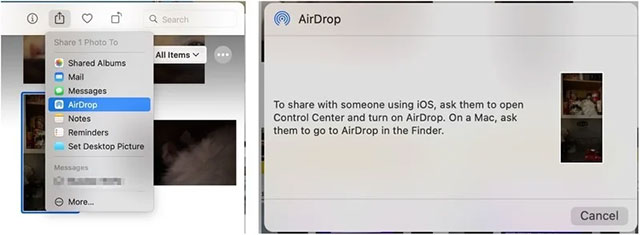 Cách nhanh nhất để chuyển một số lượng nhỏ ảnh hoặc video từ ứng dụng Photos của máy Mac này sang máy Mac khác là sử dụng AirDrop. Tuy nhiên, cần lưu ý rằng để sử dụng được phương pháp này, cả hai thiết bị cần phải được đặt ở khoảng cách đủ gần nhau để thiết lập kết nối Bluetooth LE.