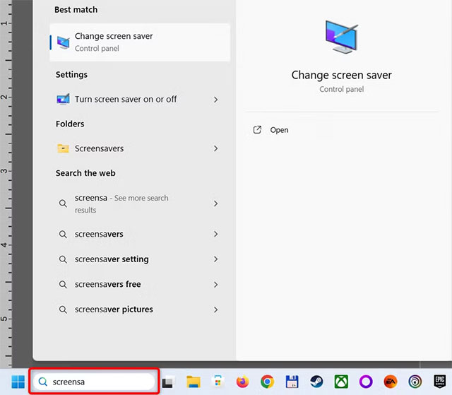 Cách nhanh hơn là gõ “screensaver” vào thanh tìm kiếm Windows để mở công cụ.