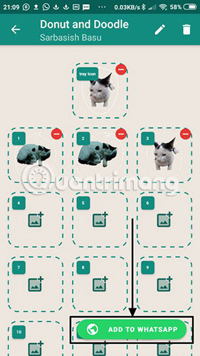 Bước 8: Khi đã hoàn tất việc thêm tất cả các sticker, hãy nhấn vào Add to WhatsApp. Bạn có thể thêm tối đa 30 sticker và đảm bảo có ít nhất 3 sticker trong một gói trên WhatsApp.