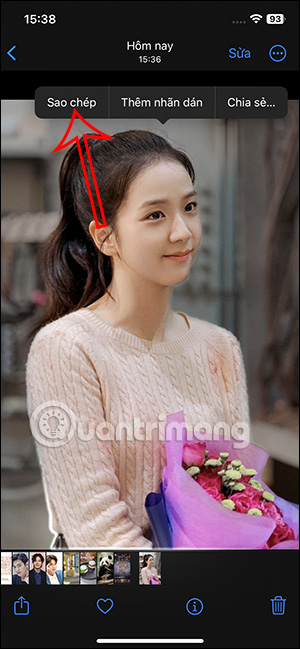 Tại giao diện album ảnh bạn chọn ảnh muốn tạo sticker, tiếp đến nhấn và giữ vào chủ thể để tách nền ảnh. Sau đó bạn nhấn tiếp vào Sao chép.