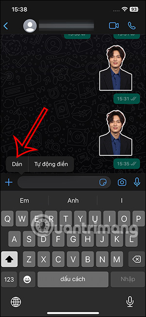Quay trở lại giao diện nhắn tin trên WhatsApp, bạn nhấn giữ vào khung nhắn tin rồi chọn Dán để paste sticker.