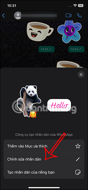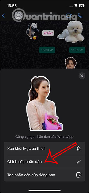 Cuối cùng sẽ bạn sẽ thấy sticker tạo để sử dụng, gửi trong tin nhắn WhatsApp như hình dưới đây.