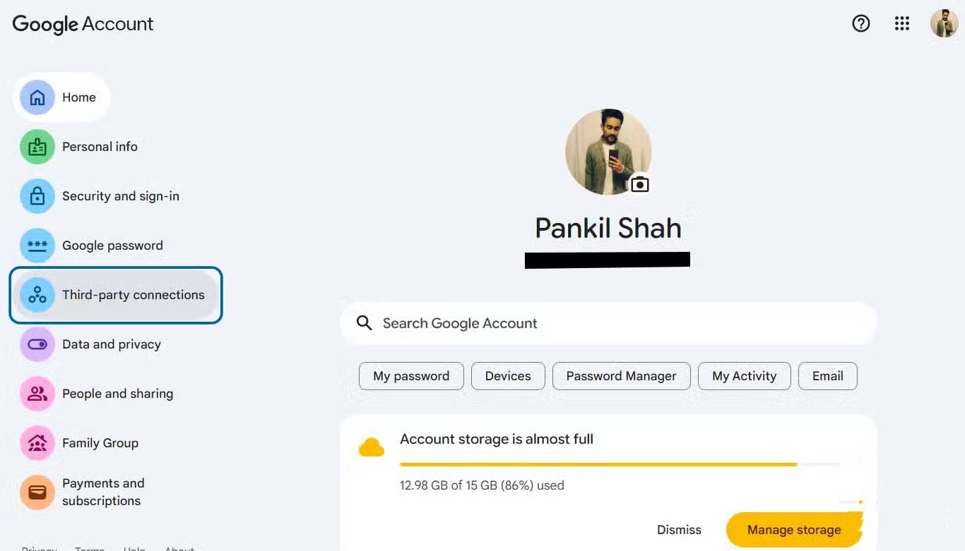 Để khắc phục vấn đề này, hãy truy cập trang My Google Account và chọn Third-party connections. Tại đây, bạn sẽ thấy danh sách các trang web mà mình đã sử dụng tài khoản Google để đăng nhập. Hãy xem qua danh sách và xóa tất cả các kết nối không mong muốn.