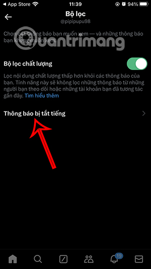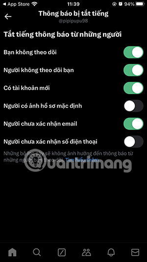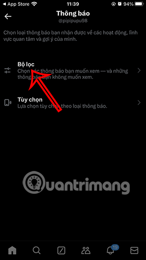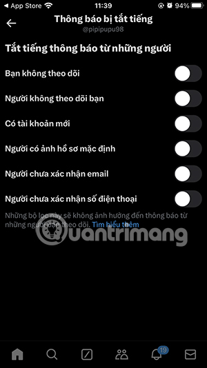 Lúc này bạn cũng nhìn thấy tùy chọn tắt thông báo cho Bộ lọc và Tùy chọn như trên X điện thoại.