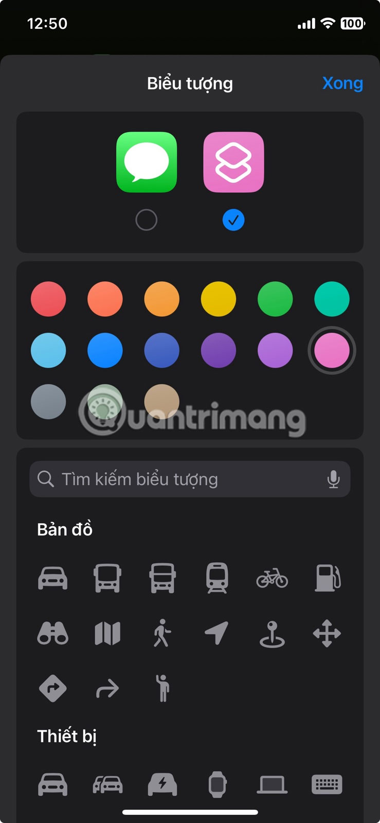 Chuyển sang biểu tượng Phím tắt. Duyệt các lựa chọn thay thế bên dưới và tìm một biểu tượng khác phù hợp hơn để xác định cuộc trò chuyện cụ thể mà bạn muốn ghim. Nhấn Xong để lưu biểu tượng mới của bạn.