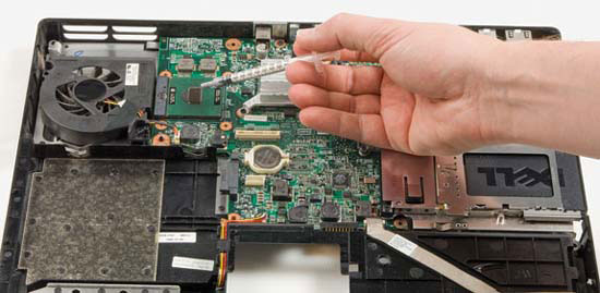 Quá trình nâng cấp CPU cũng gần giống như quá trình nâng cấp card đồ họa. Trong trường hợp Inspiron E1505, CPU nằm trực tiếp bên dưới card đồ họa, chính vì vậy để tháo gỡ nó cũng có một số phần giống như các bước thực hiện trong thay thế card đồ họa.
