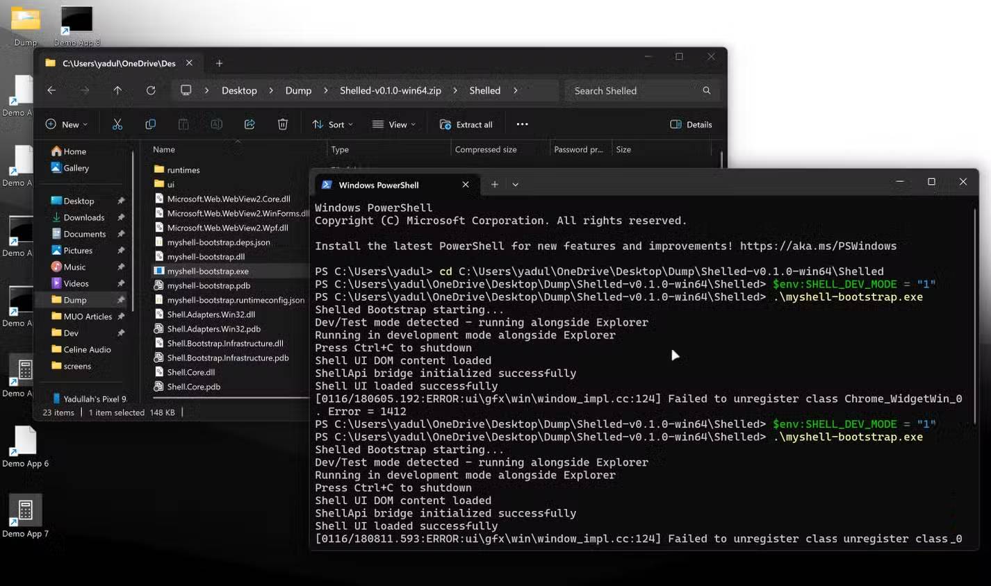 - Đóng cửa sổ console myshell-bootstrap.exe để thoát Shelled.