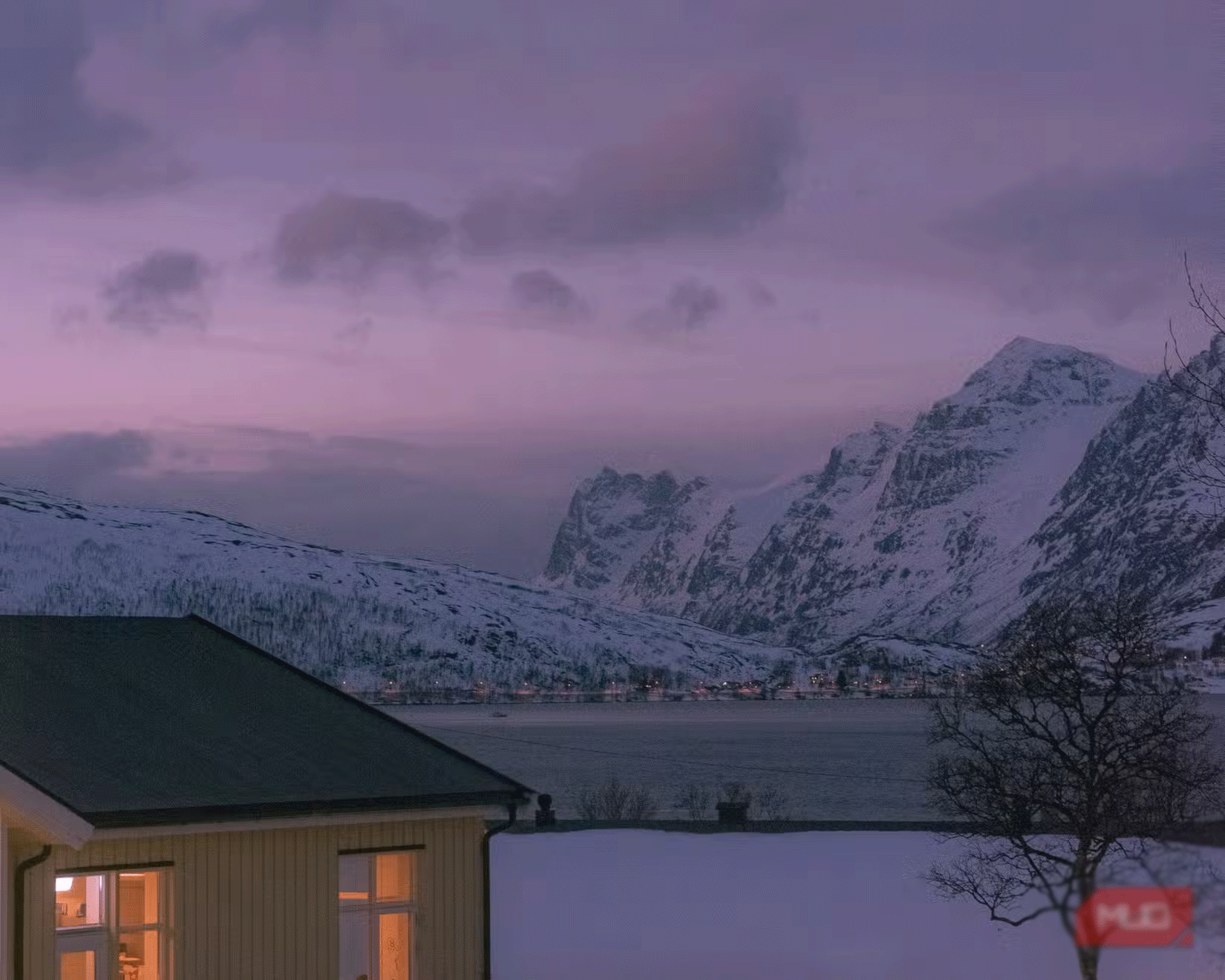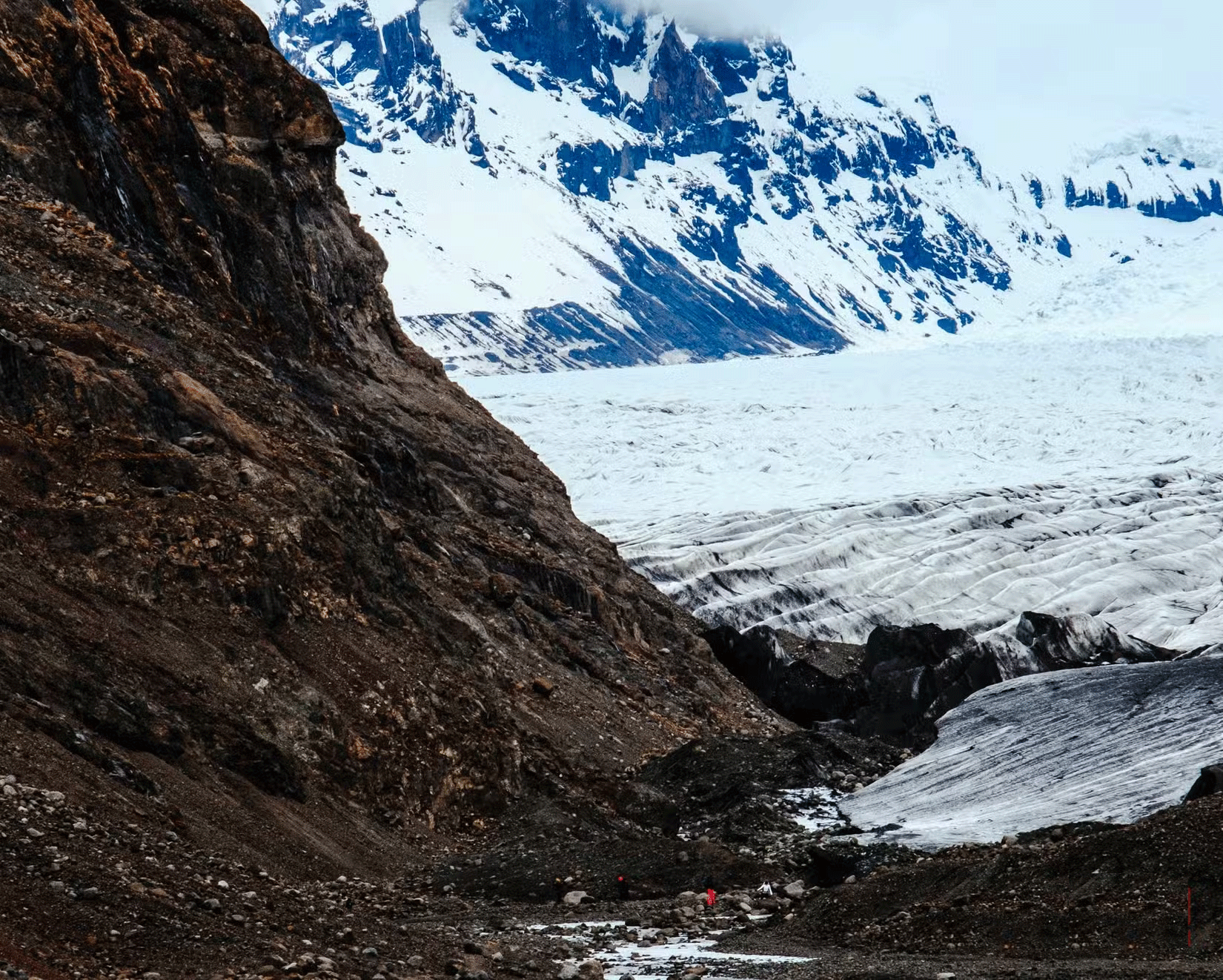 Trong bức ảnh bên dưới, máy ảnh DSLR chụp được ngọn núi ở phía sau và lớp băng trôi trên mặt nước một cách hoàn hảo.