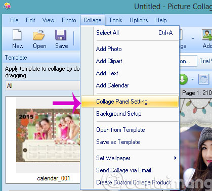 Bước 5: Để điều chỉnh kích thước tấm thiệp, hãy vào menu Collage, chọn Collage Panel Setting
