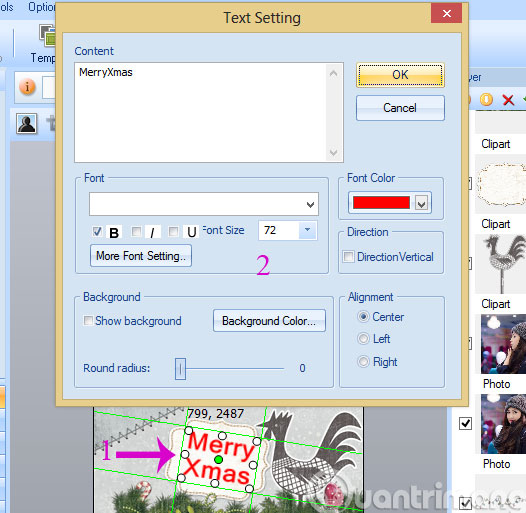 Bước 4: Click chuột vào chữ Merry Xmas để tiến hành chỉnh sửa lời chúc