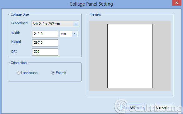 Bước 6: Cửa sổ Collage Panel Setting xuất hiện, tại mục Collage Size bạn có thể thay đổi một số thông số sau: