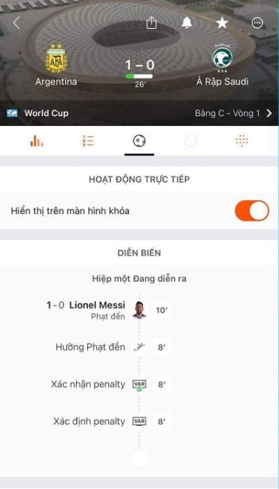 Các ứng dụng có tính năng hiện tỷ số trận đấu trên màn hình khóa iPhone