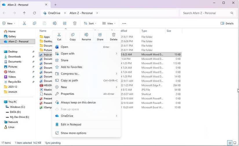 Tính năng Files On-Demand của OneDrive rất hữu ích, nhưng việc chỉ có các file trên đám mây tạo ra một điểm lỗi duy nhất. Lựa chọn an toàn hơn là giữ cả bản sao cục bộ và bản sao trên đám mây của các thư mục mà bạn thực sự coi trọng, vì chiến lược sao lưu đúng cách dựa trên tính dự phòng. Always keep on this device là giải pháp. Để bật tính năng này, hãy làm theo các bước sau: