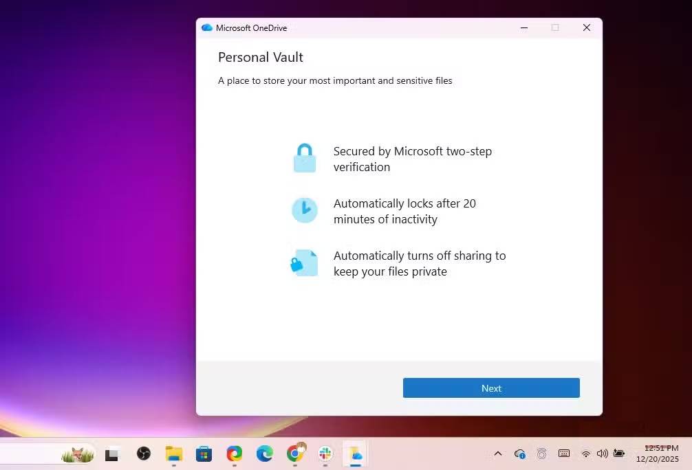 Nếu bạn sử dụng tính năng này, các file đã chọn sẽ được lưu trữ trong khu vực được mã hóa bằng BitLocker trên thiết bị của bạn. Tài khoản miễn phí chỉ giới hạn ở 3 file trong Personal Vault, nhưng điều này có thể đủ cho các tài liệu quan trọng nhất của bạn.