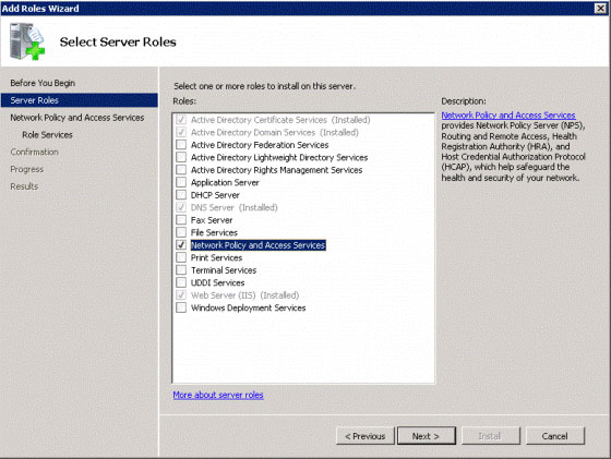 Chọn Network Policy and Access Services (xem trong hình 1) và kích Next.