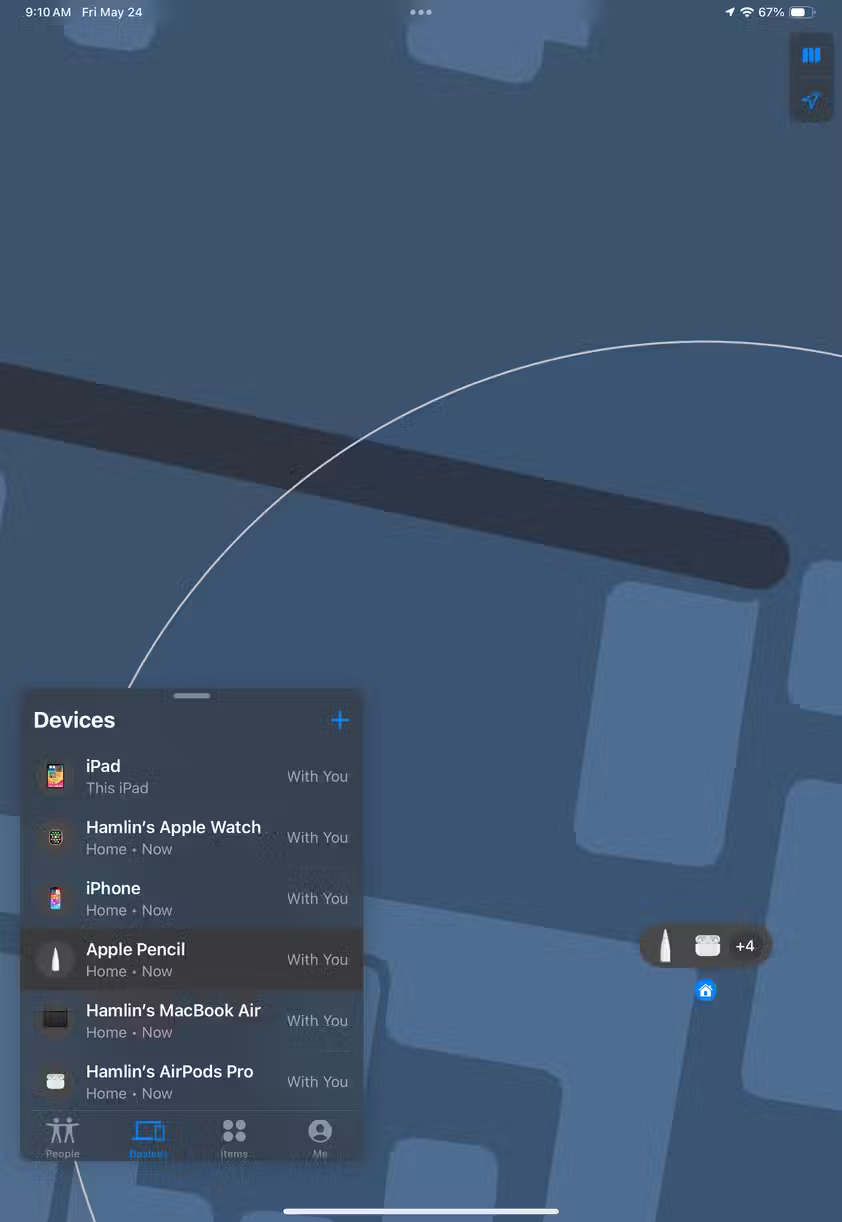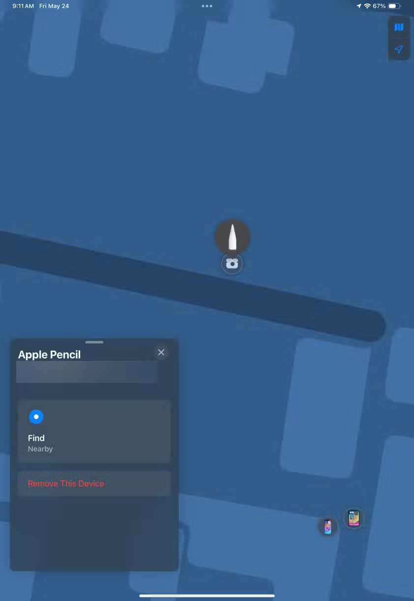 Để bắt đầu, nếu sở hữu Apple Pencil Pro, bạn có thể chỉ cần định vị bút cảm ứng bằng ứng dụng Find My - công cụ được sử dụng để tìm iPhone bị mất. Khởi chạy ứng dụng Find My, đi tới tab Devices và chọn Apple Pencil của bạn để xem vị trí của nó trên bản đồ.