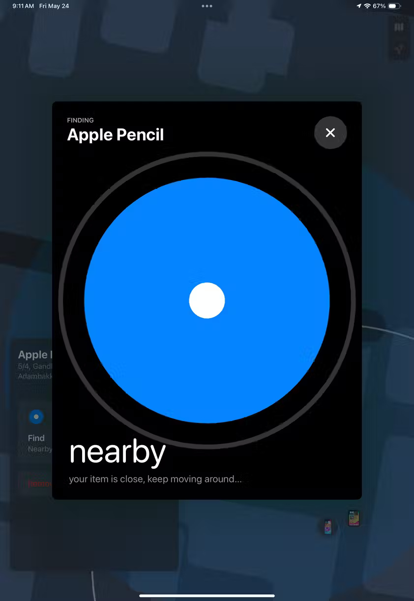 Bạn có thể nhấn Find nếu đang ở gần và muốn biết vị trí chính xác của nó. Một overlay sẽ xuất hiện trên màn hình, hiển thị một vòng tròn trên màn hình cho biết khu vực mà bút đang ở.