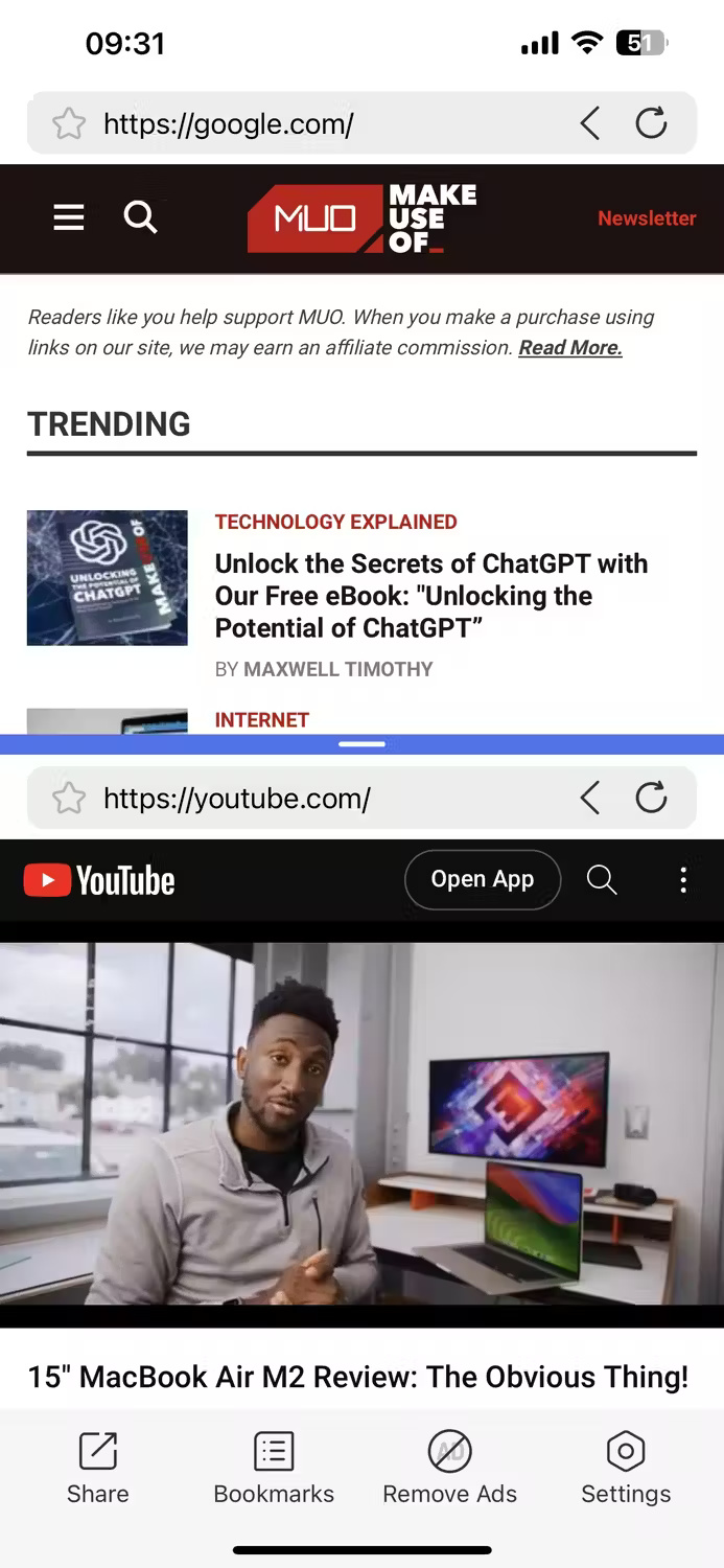 Một trong những tính năng chính của Android giúp cải thiện khả năng đa nhiệm là chế độ xem Split-Screen. Bạn có thể sử dụng chế độ xem Split-Screen trên Android để xem hai ứng dụng cùng lúc. Ví dụ, xem YouTube ở trên cùng trong khi trò chuyện với bạn bè trên WhatsApp ở phía dưới.