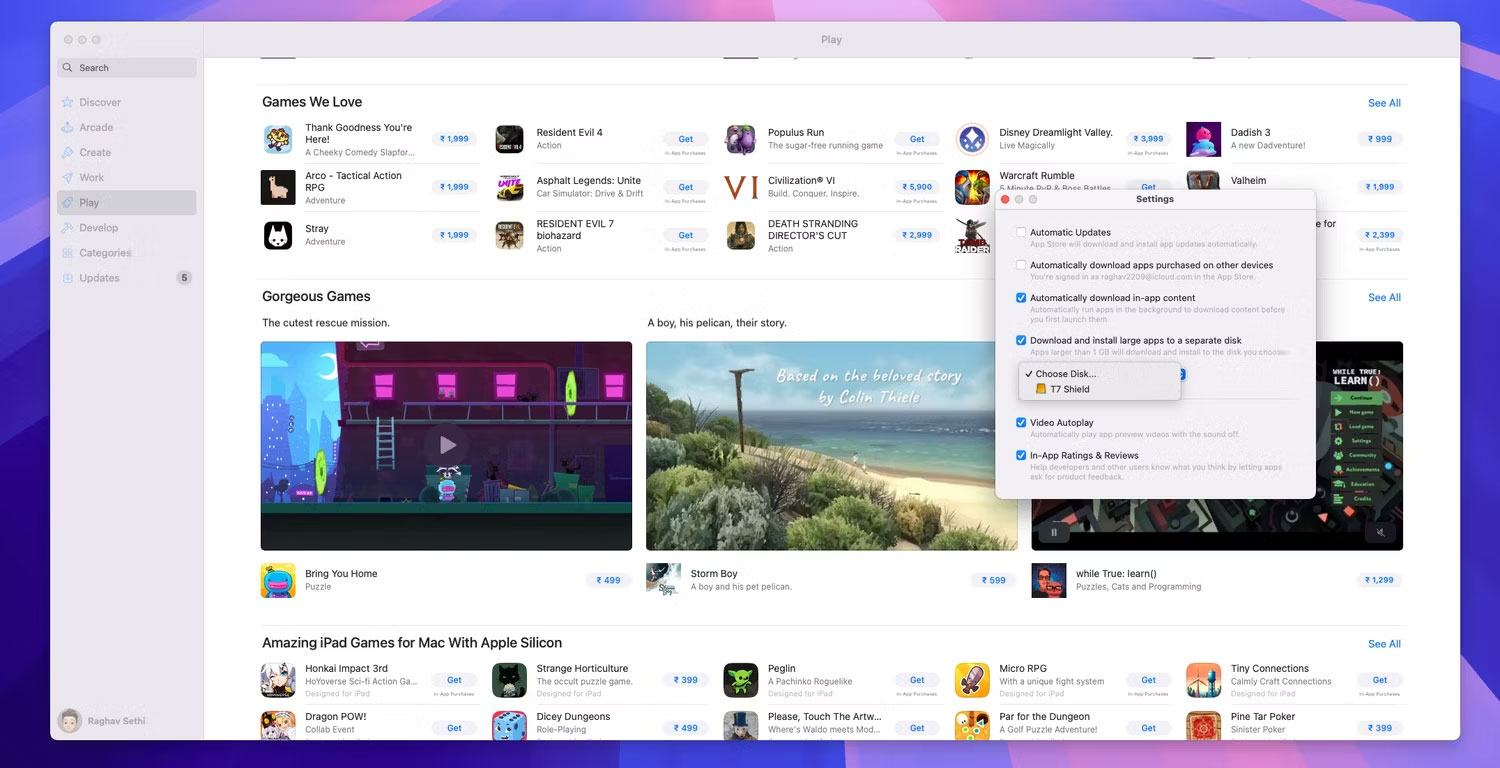 Một cải tiến lớn khác là giờ đây bạn có thể cài đặt các ứng dụng lớn hơn 1GB trên ổ cứng ngoài. Điều này rất tiện lợi cho những người sử dụng máy Mac có dung lượng lưu trữ 256GB và thường cần lưu trữ các ứng dụng lớn hơn, như game, trên ổ SSD ngoài.